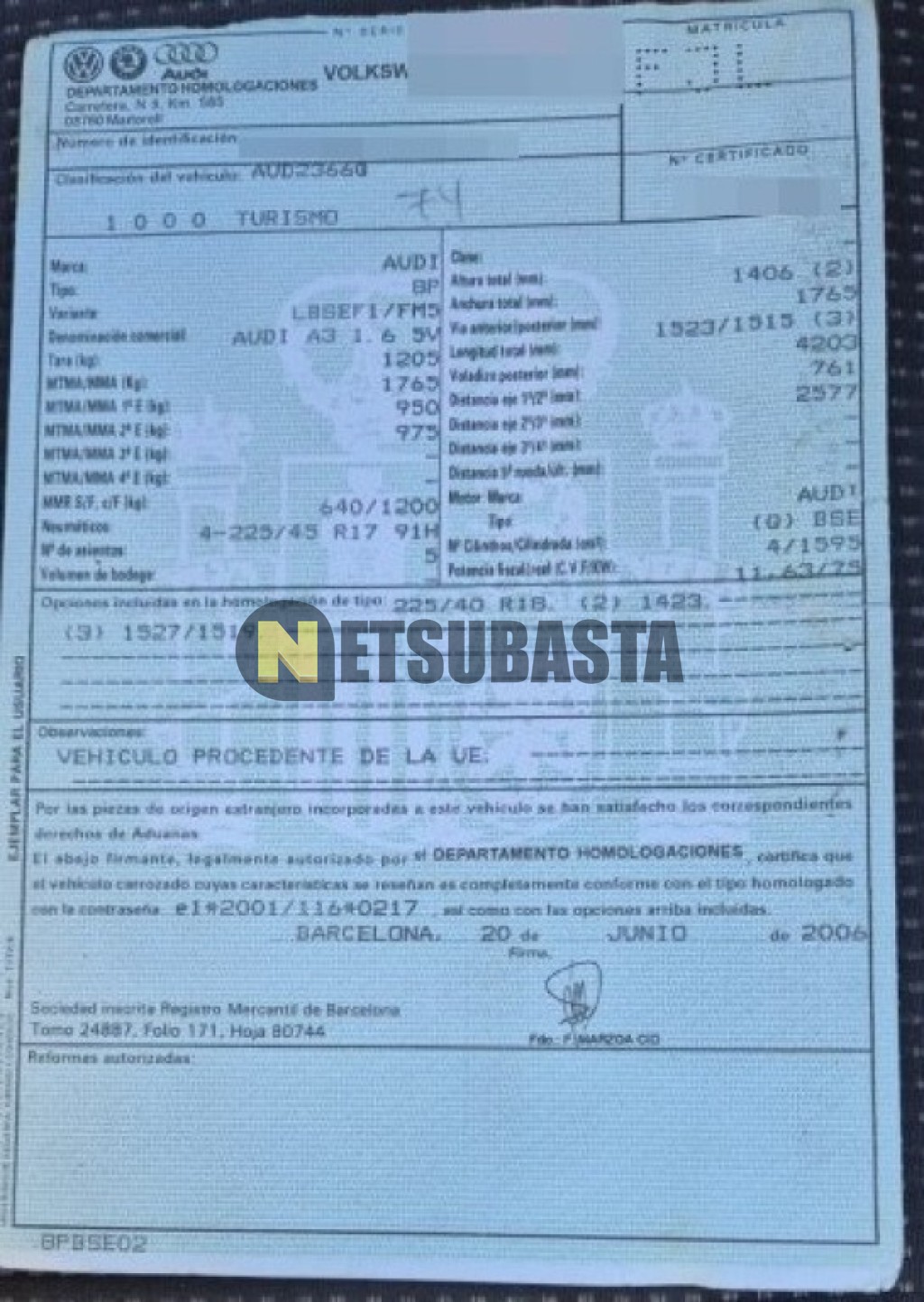 Subasta de Audi A3 1.6 2006 Siniestrados, Marca Audi, Modelo A3 1.6 , Combustible Gasolina, Kilometraje 205.000 KM, Fecha 1ª matriculación 12/2006, Matrícula ****FJL, Color Exterior , Color Interior , IVA REBU y Ubicación Alicante.