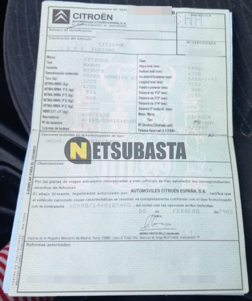 Subasta de Citroën Xsara 2.0 HDi 2003 Averiados, Marca Citroën, Modelo Xsara 2.0 HDi, Combustible Diésel, Kilometraje 208.000 KM, Fecha 1ª matriculación 05/2003, Matrícula ****CHH, Color Exterior , Color Interior , IVA REBU y Ubicación Madrid.