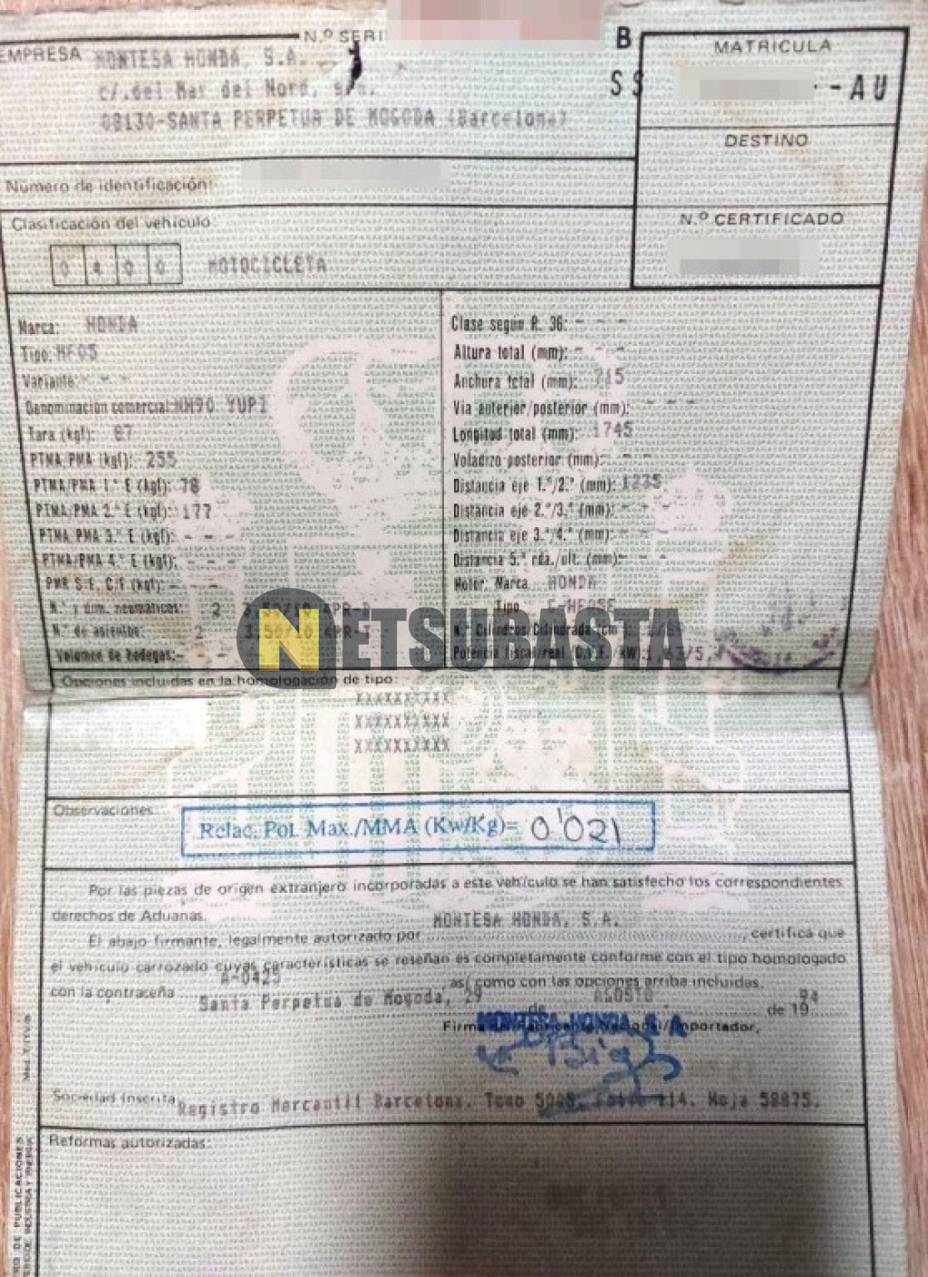 Subasta de Honda Yupi 90 1995 Averiados, Marca Honda, Modelo Yupi 90, Combustible Gasolina, Kilometraje 65.000 KM, Fecha 1ª matriculación 05/1995, Matrícula SS****AU, Color Exterior , Color Interior , IVA REBU y Ubicación Guipúzcoa.