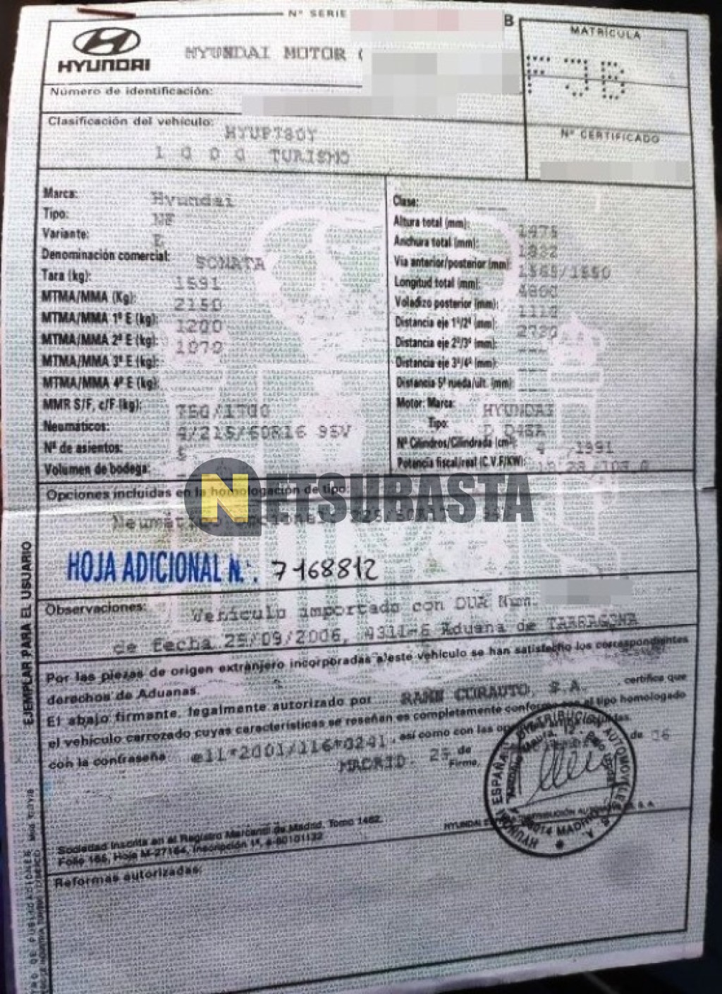Subasta de Hyundai Sonata 2.0 CRDi 2006 Averiados, Marca Hyundai, Modelo Sonata 2.0 CRDi, Combustible Diésel, Kilometraje 185.000 KM, Fecha 1ª matriculación 11/2006, Matrícula ****FJB, Color Exterior , Color Interior , IVA REBU y Ubicación La Coruña.