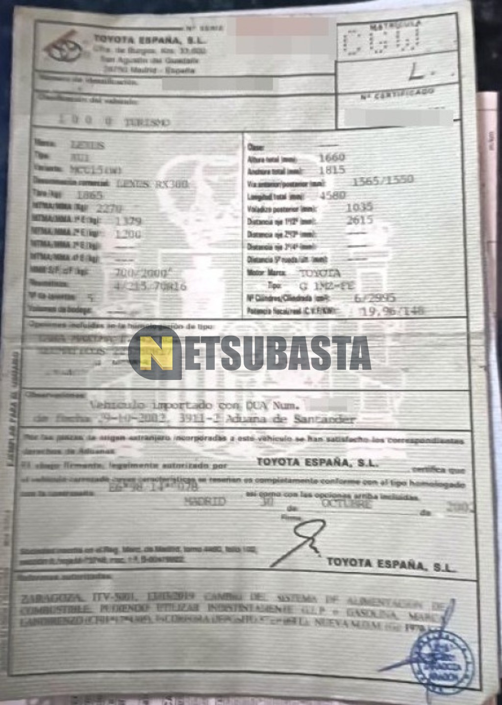 Subasta de Lexus RX 300 2003 Averiados, Marca Lexus, Modelo RX 300, Combustible Gasolina / GLP, Kilometraje 255.000 KM, Fecha 1ª matriculación 04/2003, Matrícula ****CGW, Color Exterior , Color Interior , IVA REBU y Ubicación Zaragoza.