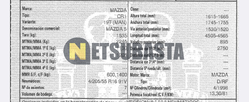 Subasta de Mazda 5 2.0 CRTD 2010 Averiados, Marca Mazda, Modelo 5 2.0 CRTD, Combustible Diésel, Kilometraje 295.000 KM, Fecha 1ª matriculación 01/2010, Matrícula ****GST, Color Exterior , Color Interior , IVA REBU y Ubicación Sevilla.