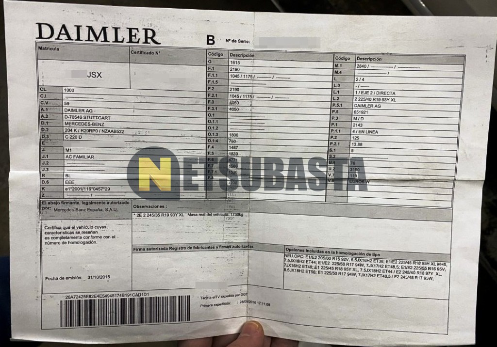 Subasta de Mercedes-Benz C 220 d Estate 7G-TRONIC PLUS 2016 Averiados, Marca Mercedes-Benz, Modelo C 220 d Estate 7G-TRONIC PLUS, Combustible Diésel, Kilometraje 293.000 KM, Fecha 1ª matriculación 09/2016, Matrícula ****JSX, Color Exterior , Color Interior , IVA IVA Deducible y Ubicación Jaén.