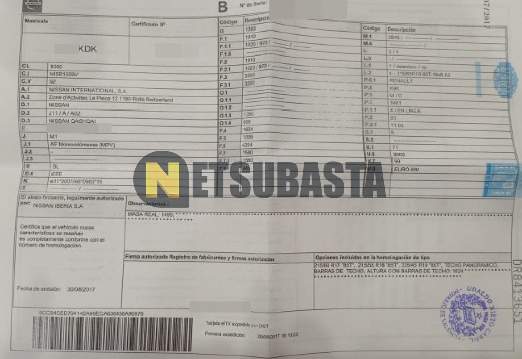 Subasta de Nissan Qashqai 1.5 dCi 2017 Siniestrados, Marca Nissan, Modelo Qashqai 1.5 dCi, Combustible Diésel, Kilometraje 127.000 KM, Fecha 1ª matriculación 09/2017, Matrícula ****KDK, Color Exterior , Color Interior , IVA REBU y Ubicación Valencia.