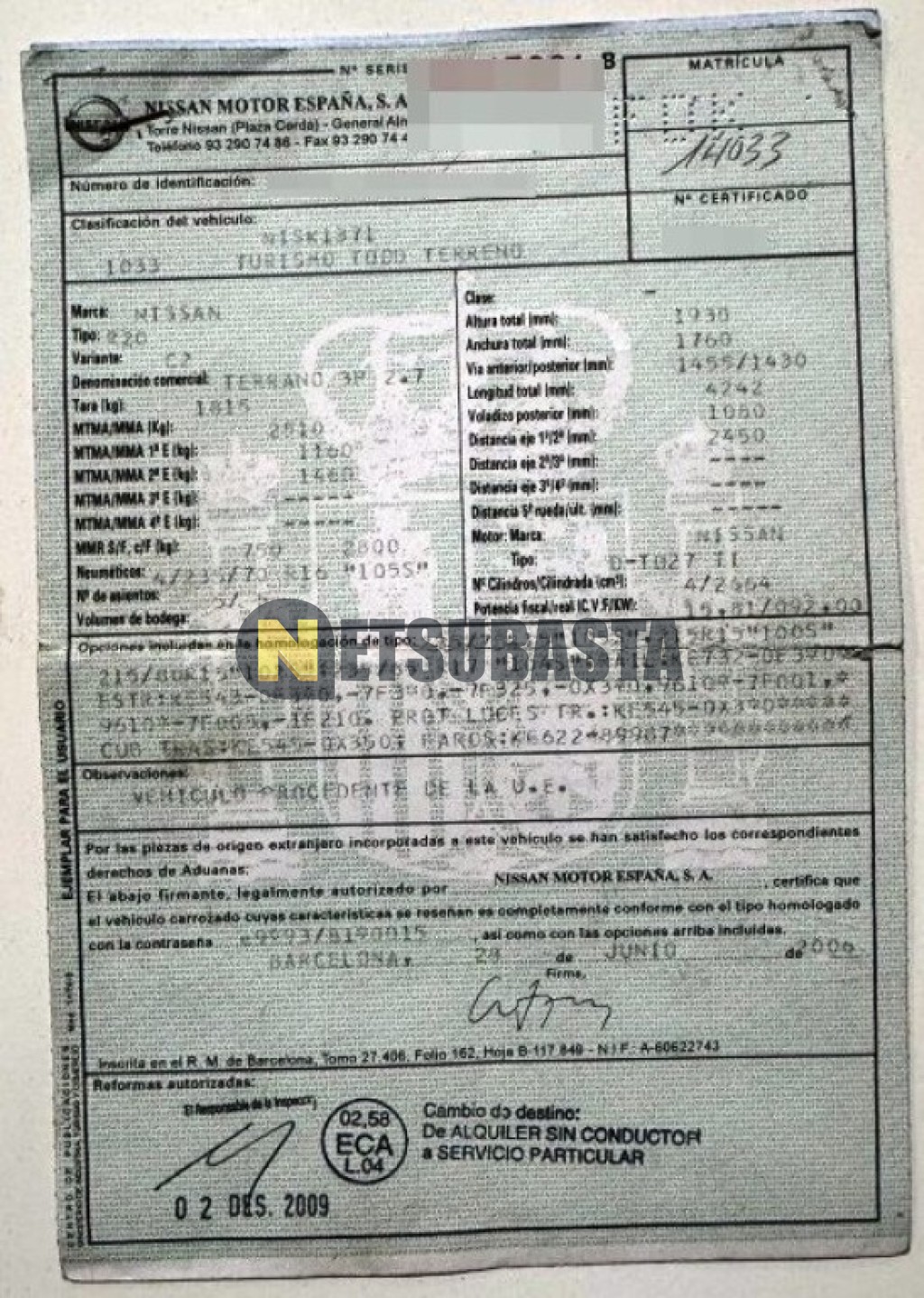 Subasta de Nissan Terrano II 2.7 TDi 2006 Averiados, Marca Nissan, Modelo Terrano II 2.7 TDi, Combustible Diésel, Kilometraje 235.000 KM, Fecha 1ª matriculación 07/2006, Matrícula ****FDK, Color Exterior , Color Interior , IVA REBU y Ubicación Barcelona.