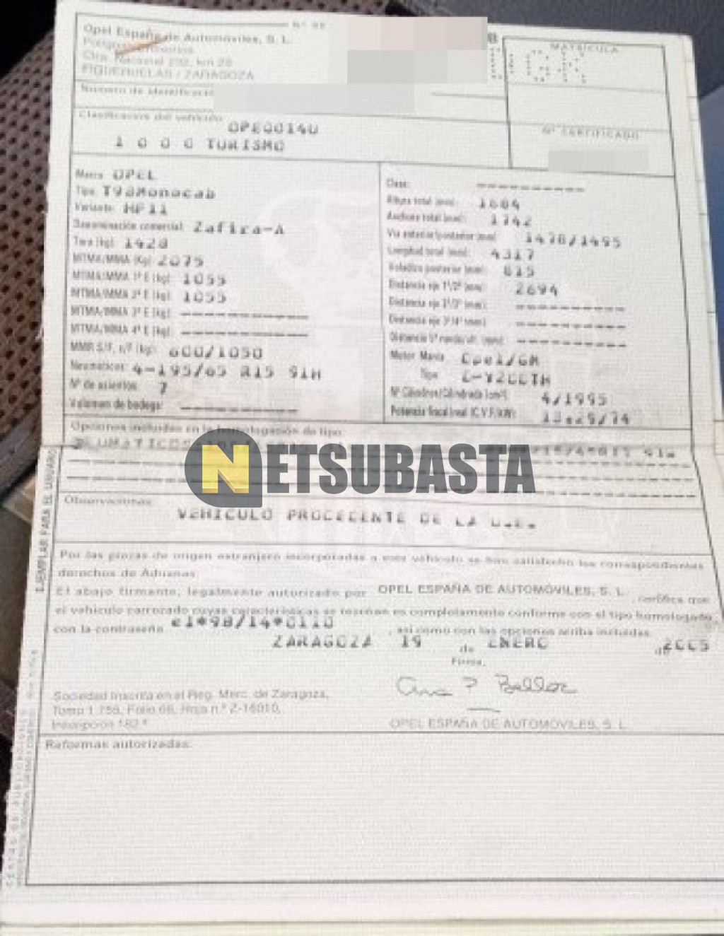 Subasta de Opel Zafira 2.0 DTi 16V 2005 Averiados, Marca Opel, Modelo Zafira 2.0 DTi 16V, Combustible Diésel, Kilometraje 185.000 KM, Fecha 1ª matriculación 02/2005, Matrícula ****DGK, Color Exterior , Color Interior , IVA REBU y Ubicación Orense.