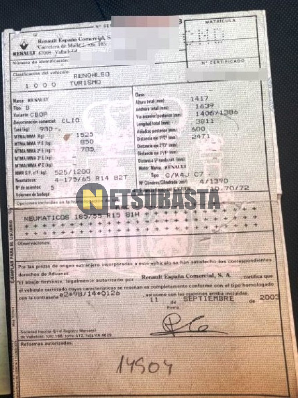 Subasta de Renault Clio 1.4 16v 2003 Averiados, Marca Renault, Modelo Clio 1.4 16v, Combustible Gasolina, Kilometraje 300.000 KM, Fecha 1ª matriculación 10/2003, Matrícula ****CND, Color Exterior , Color Interior , IVA REBU y Ubicación Santa Cruz de Tenerife.