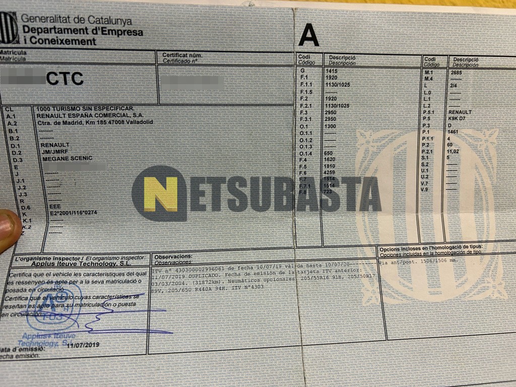 Subasta de Renault Scenic 1.5 dCi 2004 Averiados, Marca Renault, Modelo Scenic 1.5 dCi, Combustible Diésel, Kilometraje 290.000 KM, Fecha 1ª matriculación 03/2004, Matrícula ****CTC, Color Exterior , Color Interior , IVA REBU y Ubicación Tarragona.