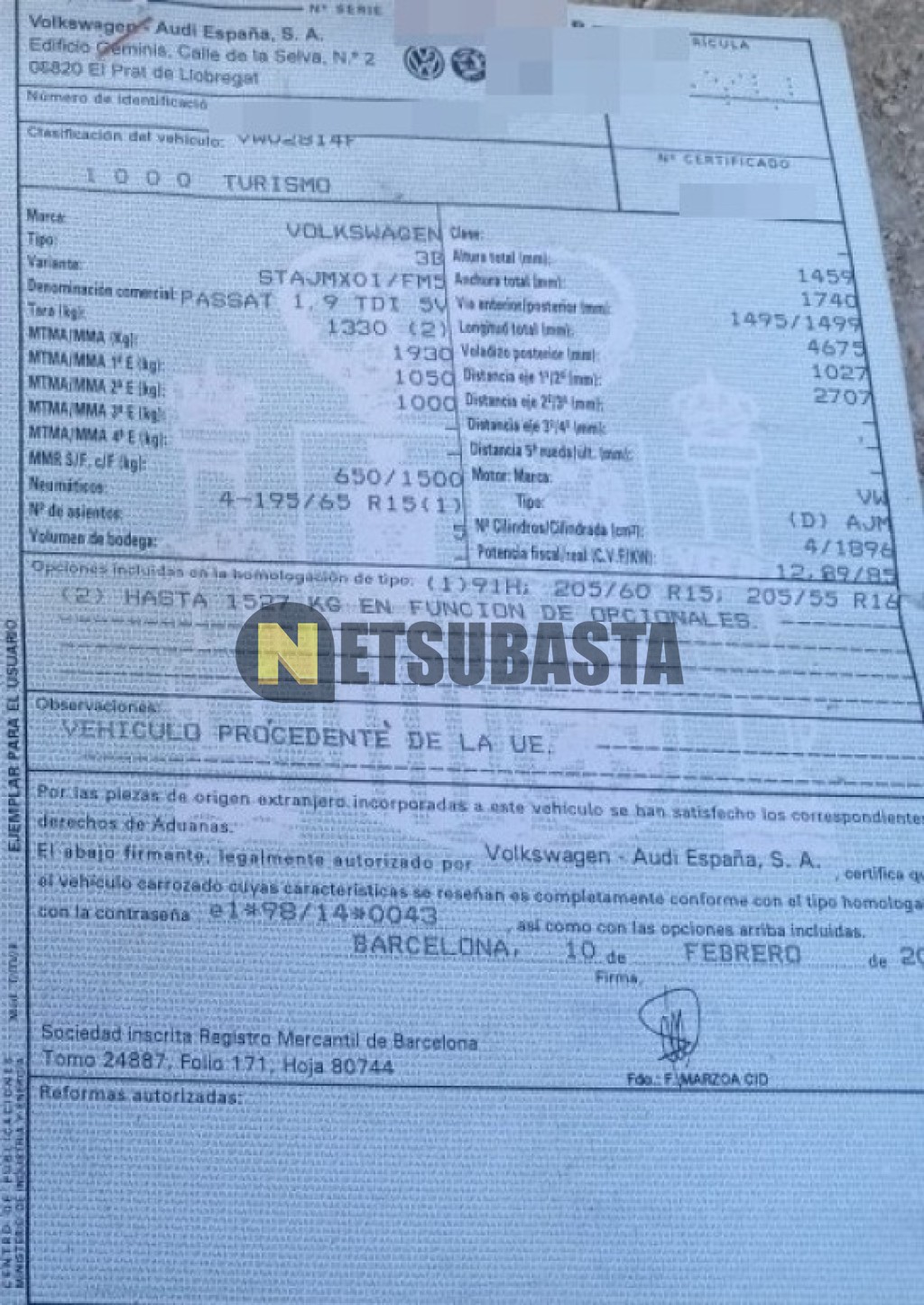 - Modelo:Passat 1.9 TDI