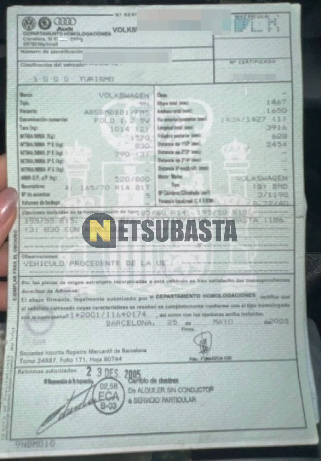 Subasta de Volkswagen Polo 1.2 2005 Averiados, Marca Volkswagen, Modelo Polo 1.2, Combustible Gasolina, Kilometraje 206.000 KM, Fecha 1ª matriculación 06/2005, Matrícula ****DLK, Color Exterior , Color Interior , IVA REBU y Ubicación Barcelona.