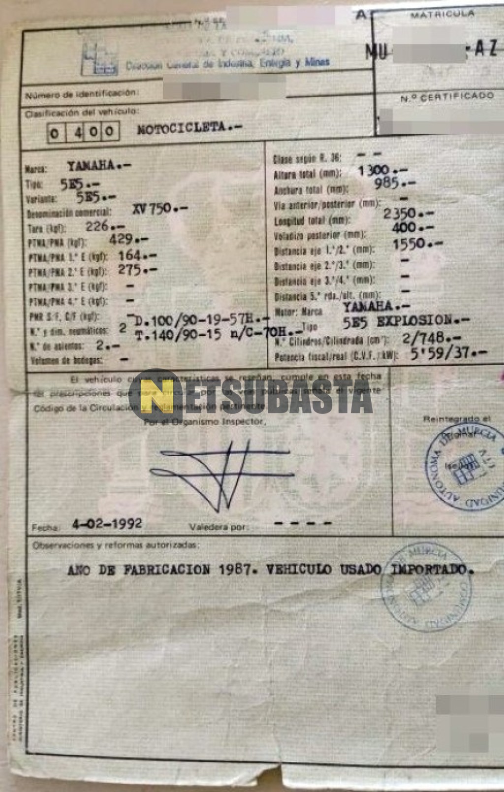 Subasta de Yamaha V MAX 750 1987 Averiados, Marca Yamaha, Modelo V MAX 750, Combustible Gasolina, Kilometraje 90.000 KM, Fecha 1ª matriculación 01/1987, Matrícula MU***AZ, Color Exterior , Color Interior , IVA REBU y Ubicación Murcia.