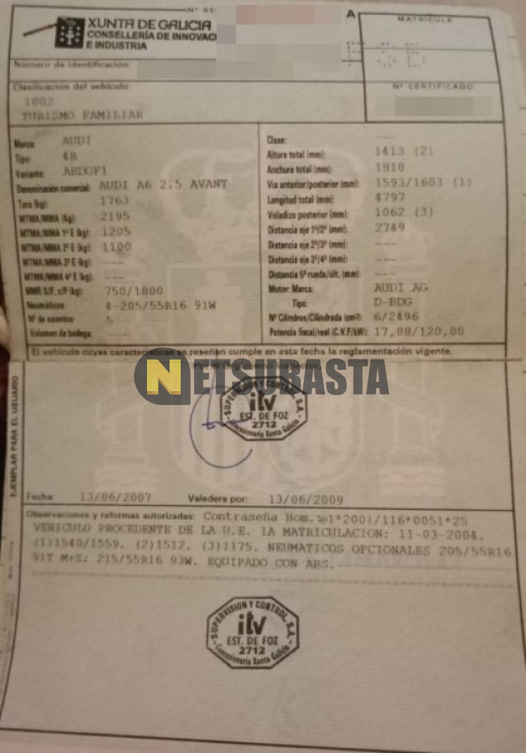 Recuerde que si lo desea, puede imprimir la ficha del vehículo Audi A6 Avant 2.5 TDI multitronic 6 vel. 2004 con todas sus características técnicas.