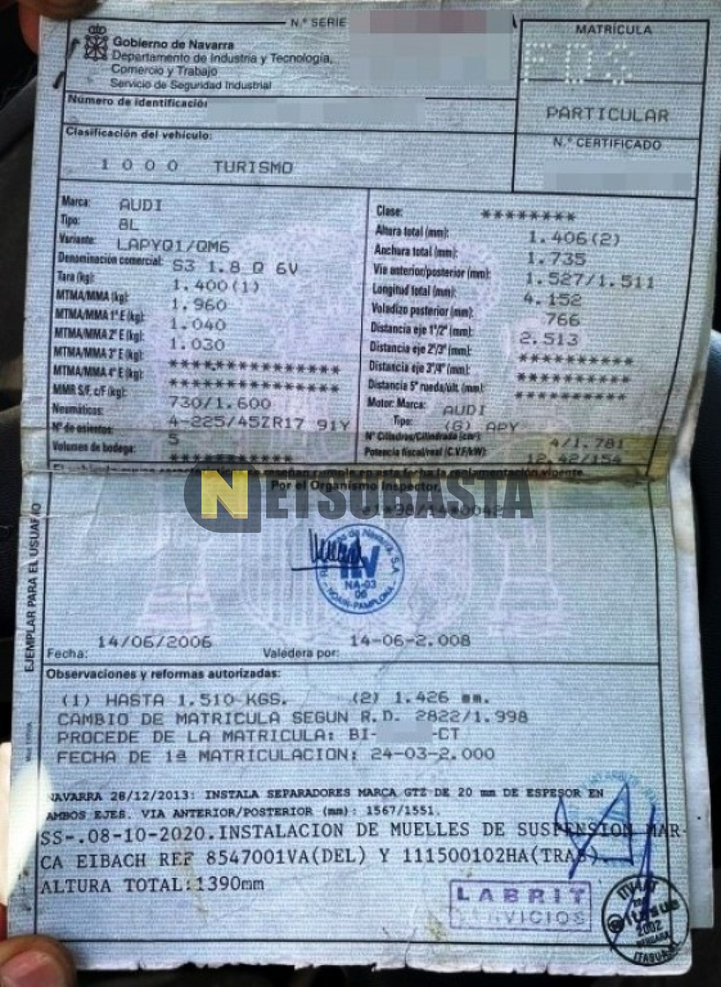 Recuerde que si lo desea, puede imprimir la ficha del vehículo Audi S3 1.8 T quattro 2000 con todas sus características técnicas.