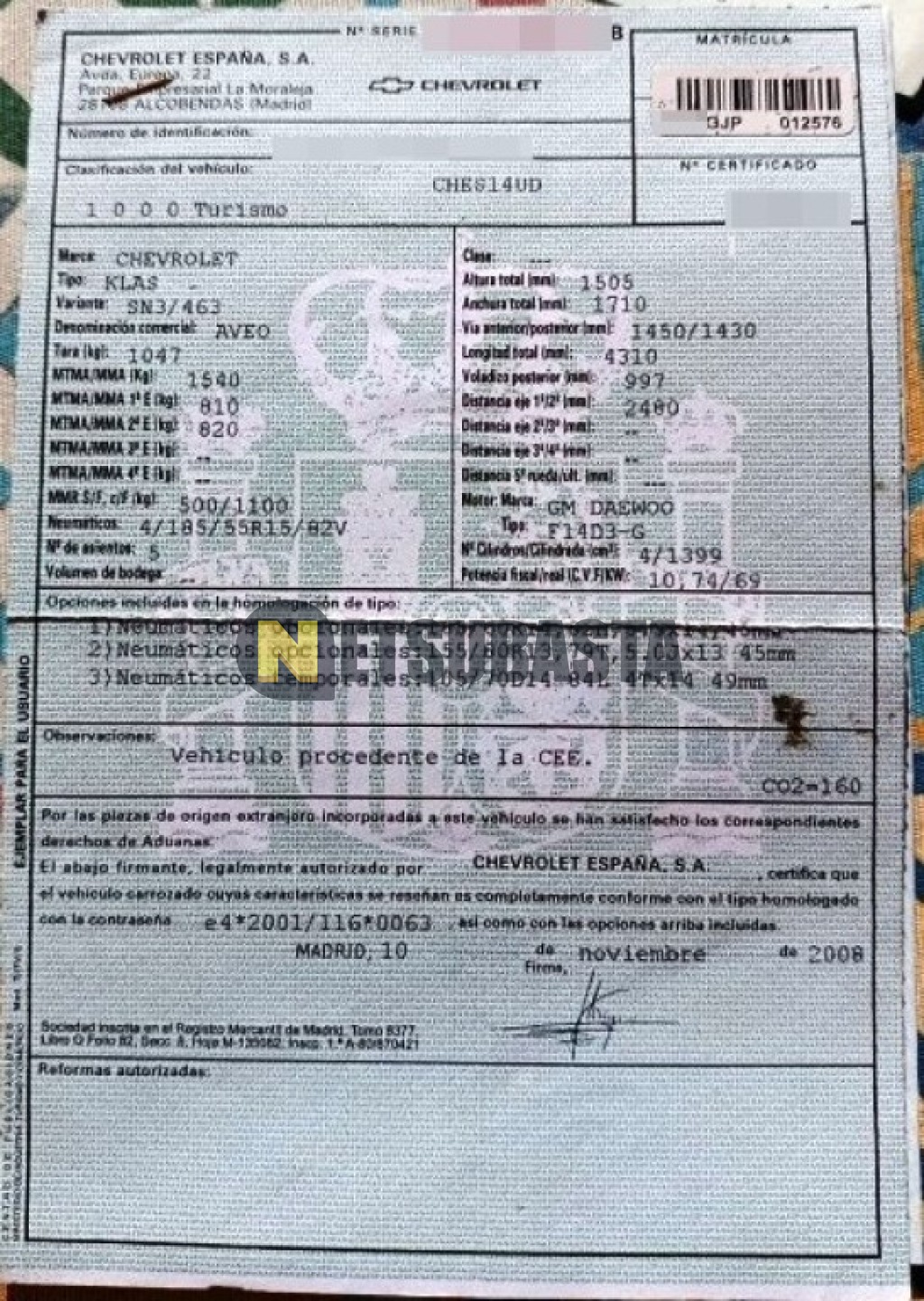 - Modelo:Aveo 1.4 16v