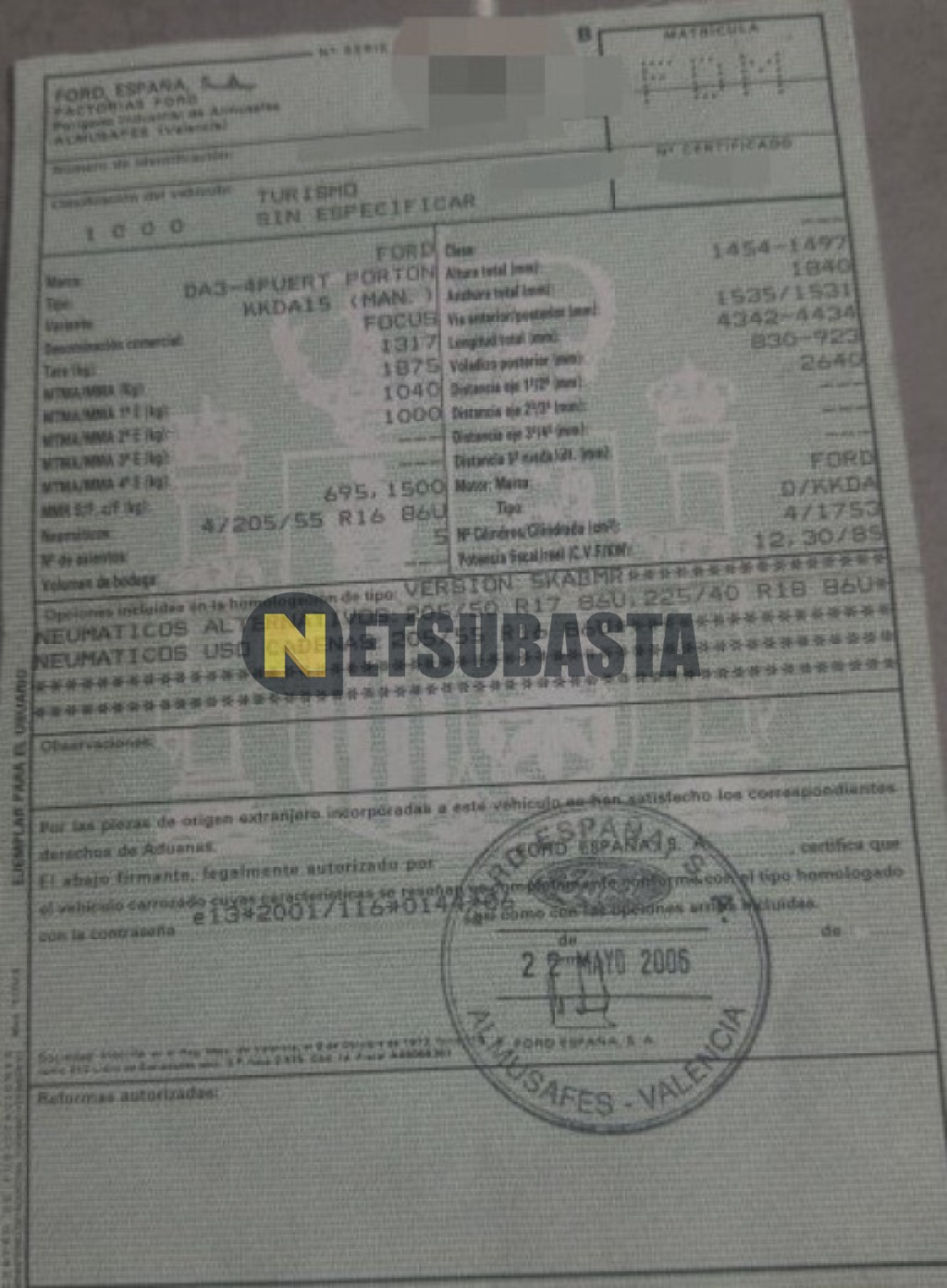 Subasta de Ford Focus 1.8 TDCi 2006 Averiados, Marca Ford, Modelo Focus 1.8 TDCi, Combustible Diésel, Kilometraje 250.000 KM, Fecha 1ª matriculación 07/2006, Matrícula ****FDM, Color Exterior , Color Interior , IVA REBU y Ubicación Ciudad Real.