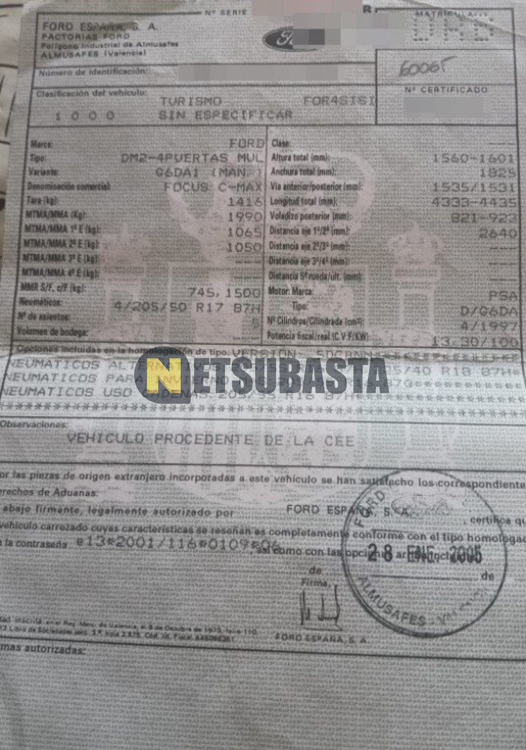 Subasta de Ford Focus C-Max 2.0 TDCi 2005 Averiados, Marca Ford, Modelo Focus C-Max 2.0 TDCi, Combustible Diésel, Kilometraje 320.000 KM, Fecha 1ª matriculación 09/2005, Matrícula ****DRB, Color Exterior , Color Interior , IVA REBU y Ubicación Barcelona.