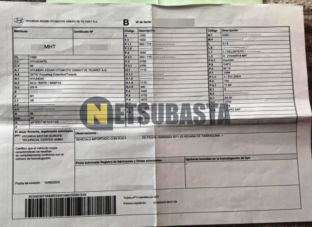 Subasta de Hyundai i20 N 1.6 T-GDi 2023 Siniestrados, Marca Hyundai, Modelo i20 N 1.6 T-GDi, Combustible Gasolina, Kilometraje 25.000 KM, Fecha 1ª matriculación 06/2023, Matrícula ****MHT, Color Exterior , Color Interior , IVA REBU y Ubicación Vizcaya.