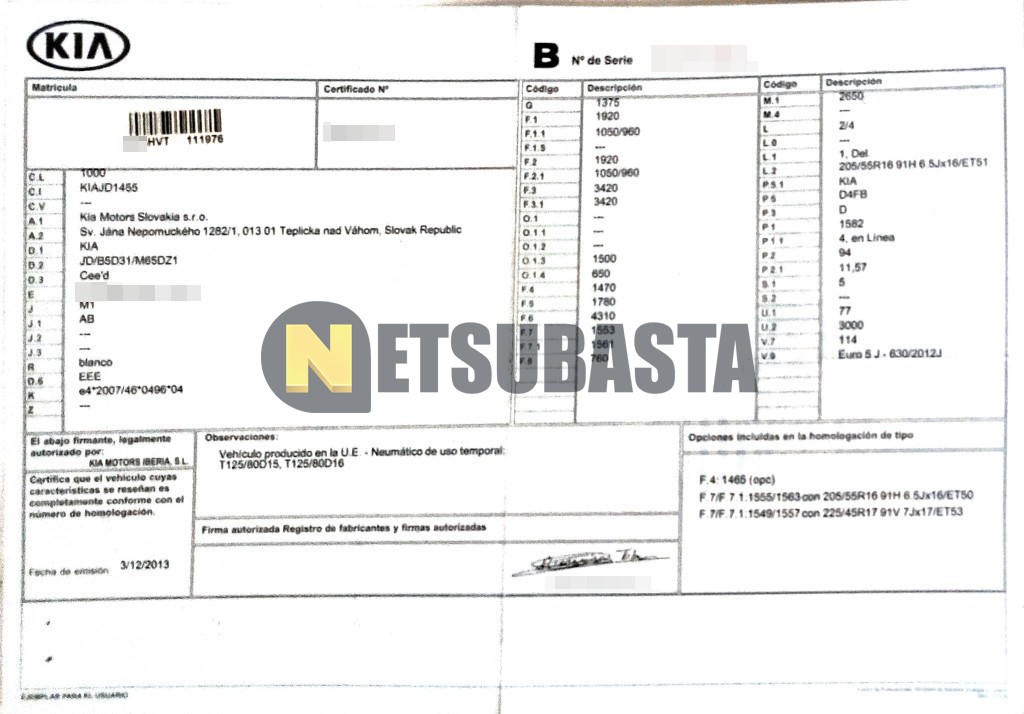 Subasta de Kia Ceed 1.6 CRDi 2014 Siniestrados, Marca Kia, Modelo Ceed 1.6 CRDi , Combustible Diésel, Kilometraje 285.000 KM, Fecha 1ª matriculación 02/2014, Matrícula ****HVT, Color Exterior , Color Interior , IVA REBU y Ubicación Huesca.