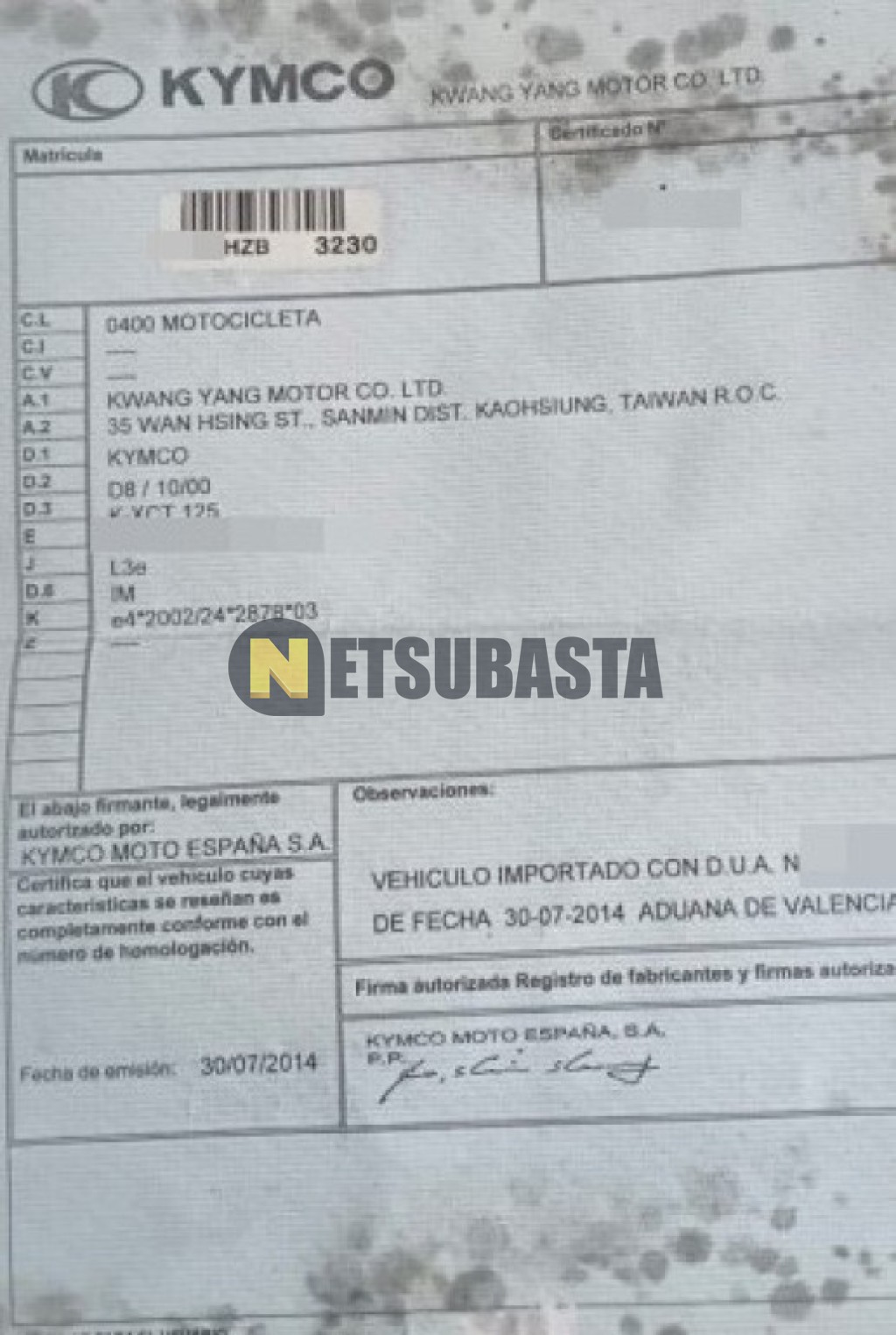 Subasta de Kymco K-XCT 125i 2014 Averiados, Marca Kymco, Modelo K-XCT 125i, Combustible Gasolina, Kilometraje 50.000 KM, Fecha 1ª matriculación 08/2014, Matrícula ****HZB, Color Exterior , Color Interior , IVA REBU y Ubicación Barcelona.