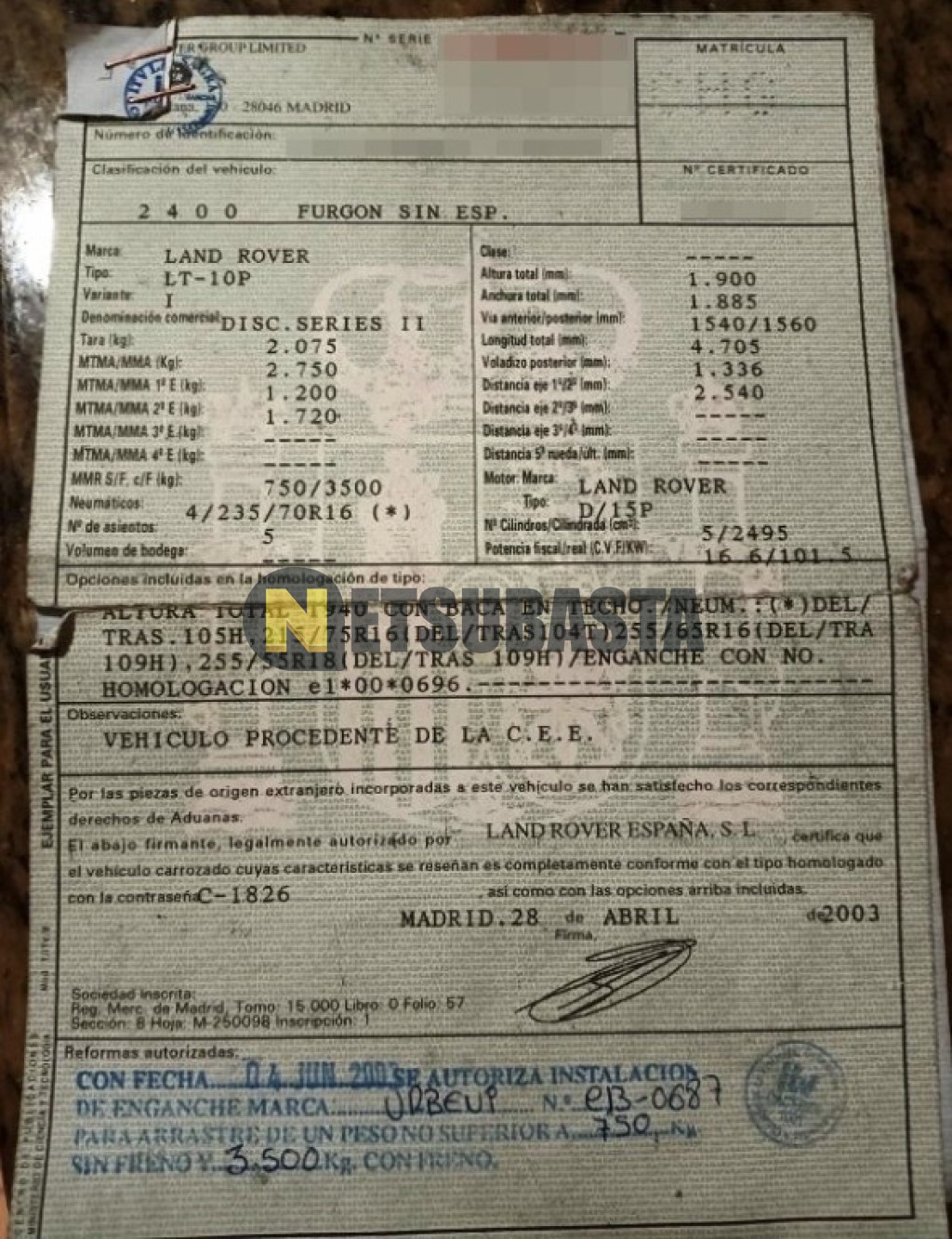 Recuerde que si lo desea, puede imprimir la ficha del vehículo Land-Rover Discovery 2.5 Td5 2003 con todas sus características técnicas.