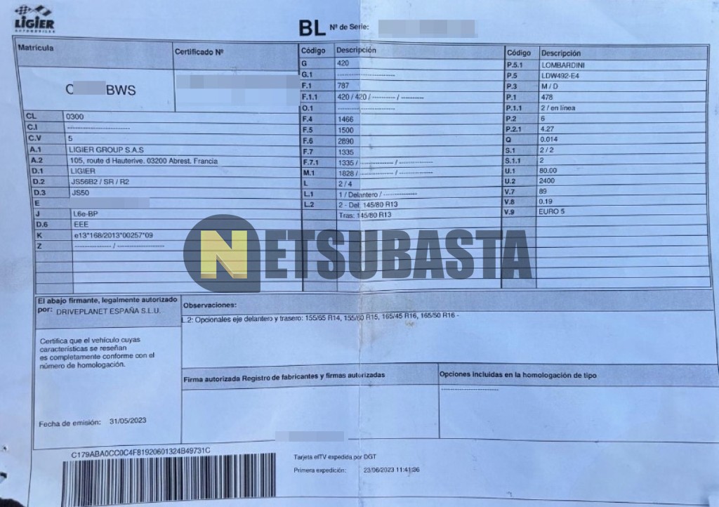 Subasta de Ligier JS50 2023 Siniestrados, Marca Ligier, Modelo JS50, Combustible Diésel, Kilometraje 12.000 KM, Fecha 1ª matriculación 06/2023, Matrícula C****BWS, Color Exterior , Color Interior , IVA REBU y Ubicación Murcia.