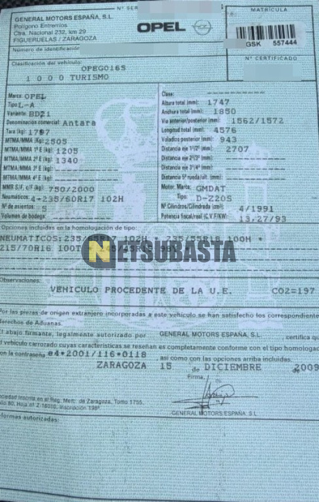 - Modelo:Antara 2.0 CDTI 16v 4x2
