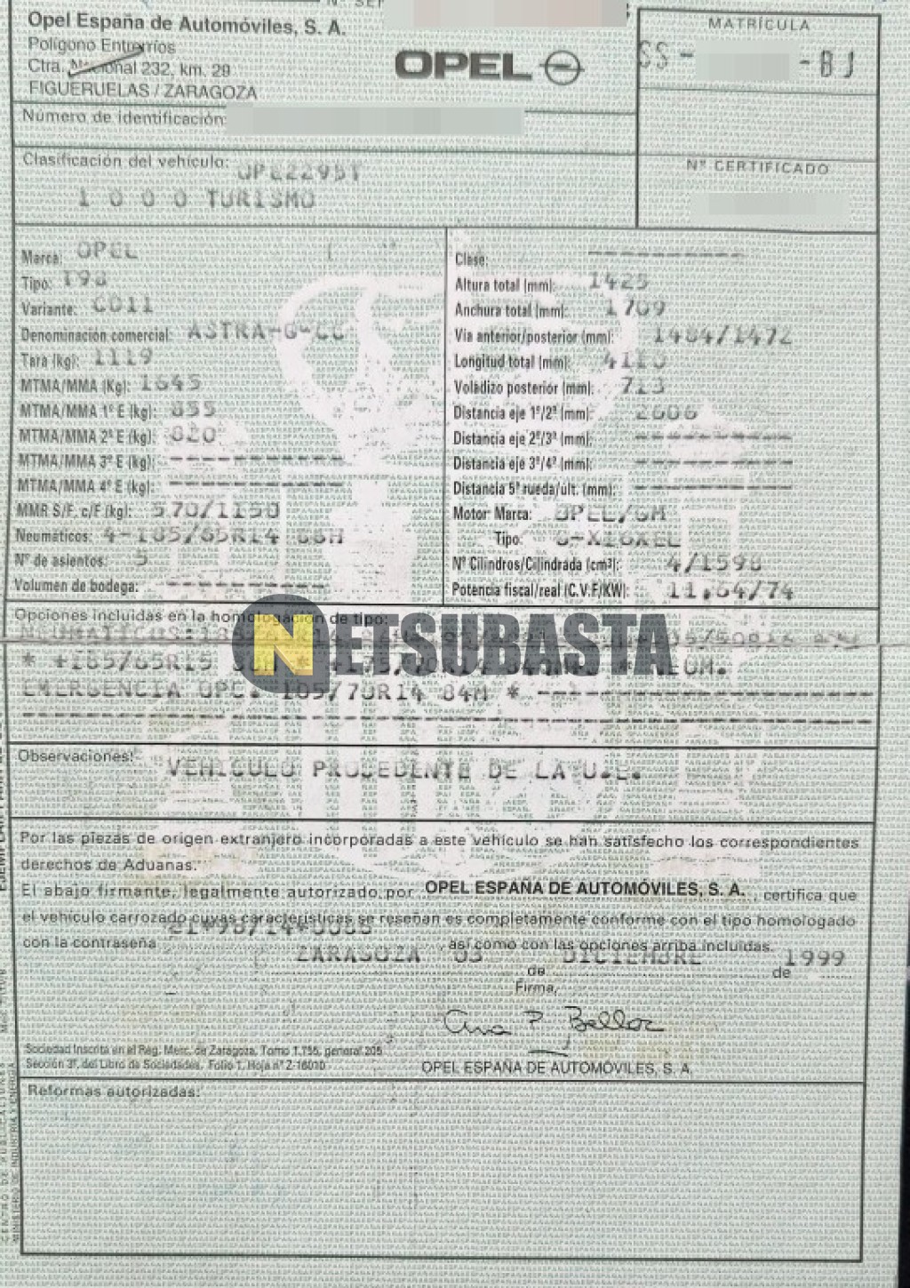 Recuerde que si lo desea, puede imprimir la ficha del vehículo Opel Astra 1.6 16v 2000 con todas sus características técnicas.