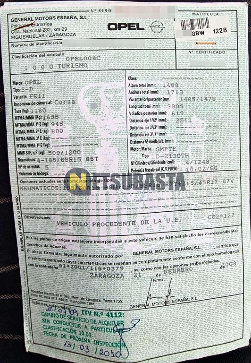 Subasta de Opel Corsa 1.3 CDTi 2008 Averiados, Marca Opel, Modelo Corsa 1.3 CDTi, Combustible Diésel, Kilometraje 160.000 KM , Fecha 1ª matriculación 03/2008, Matrícula ****GBW, Color Exterior , Color Interior , IVA REBU y Ubicación Sevilla.