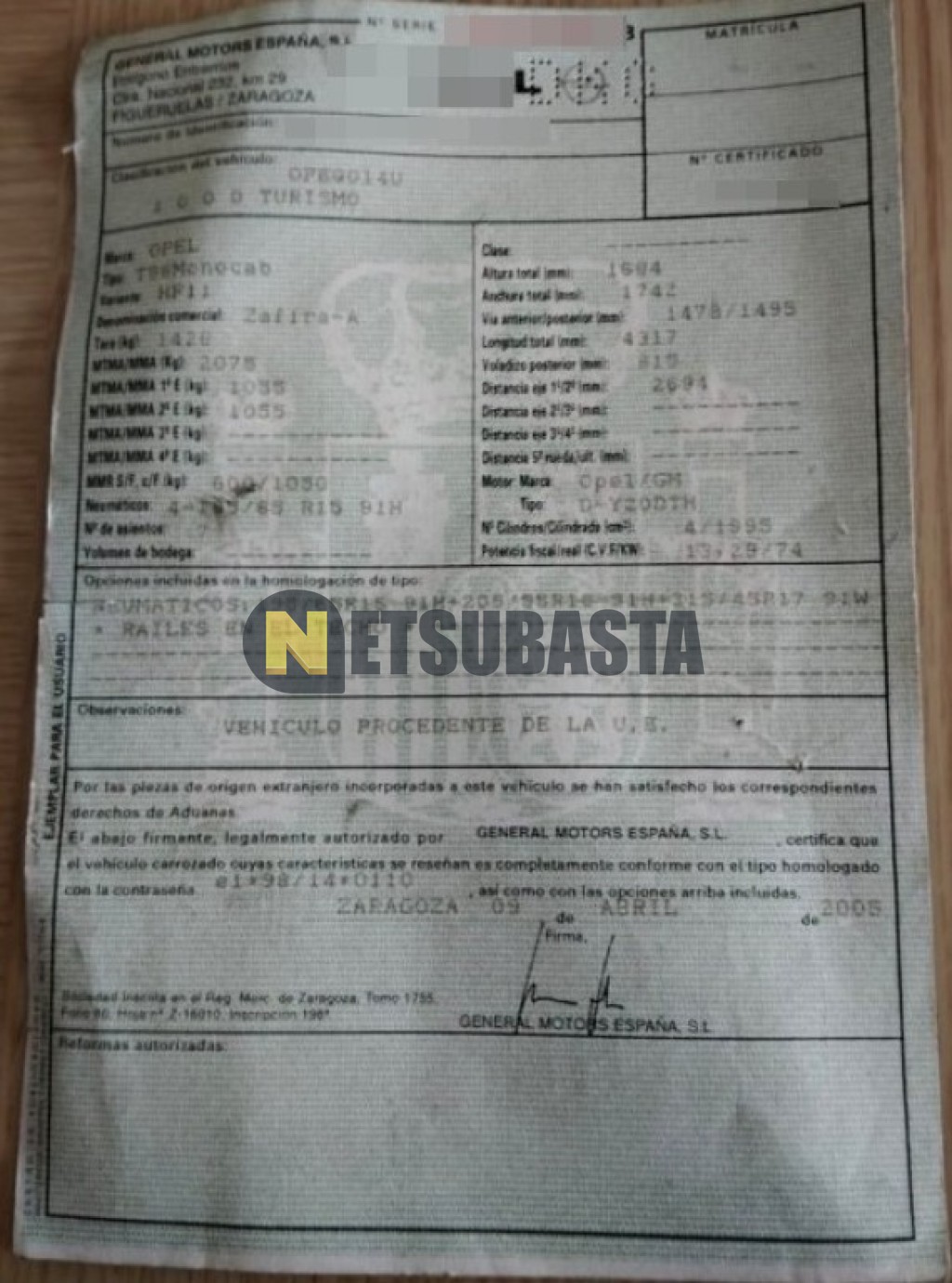 Subasta de Opel Zafira 2.0 DTi 16V 2005 Averiados, Marca Opel, Modelo Zafira 2.0 DTi 16V, Combustible Diésel, Kilometraje 350.000 KM, Fecha 1ª matriculación 03/2005, Matrícula ****DKG, Color Exterior , Color Interior , IVA REBU y Ubicación Madrid.