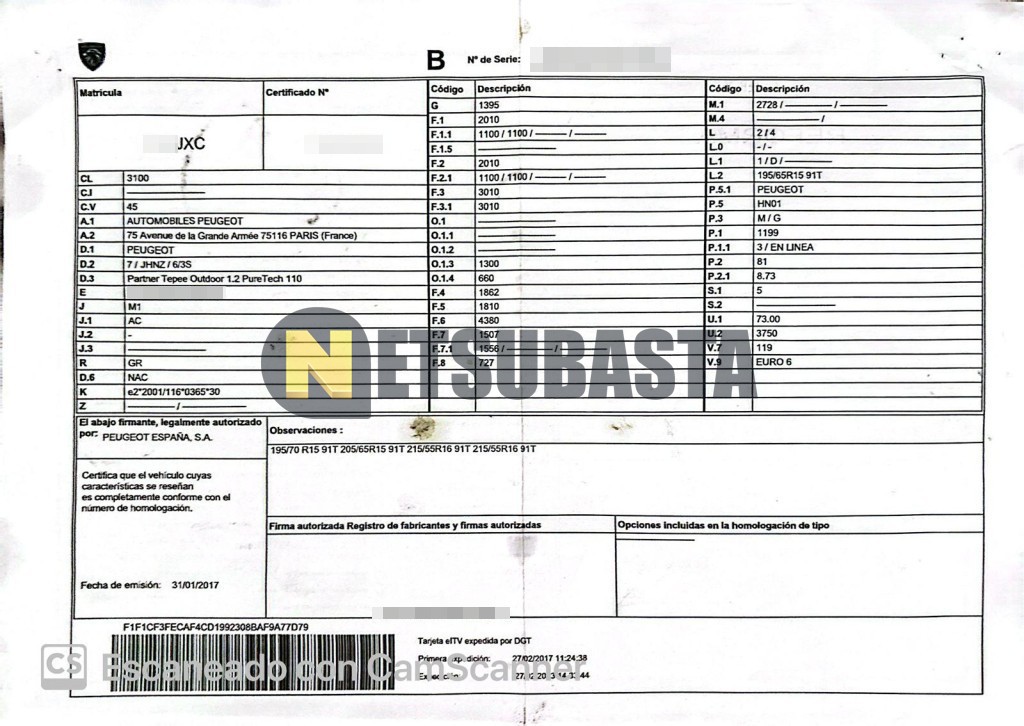 Recuerde que si lo desea, puede imprimir la ficha del vehículo Peugeot Partner Tepee 1.2 PureTech 2017 con todas sus características técnicas.