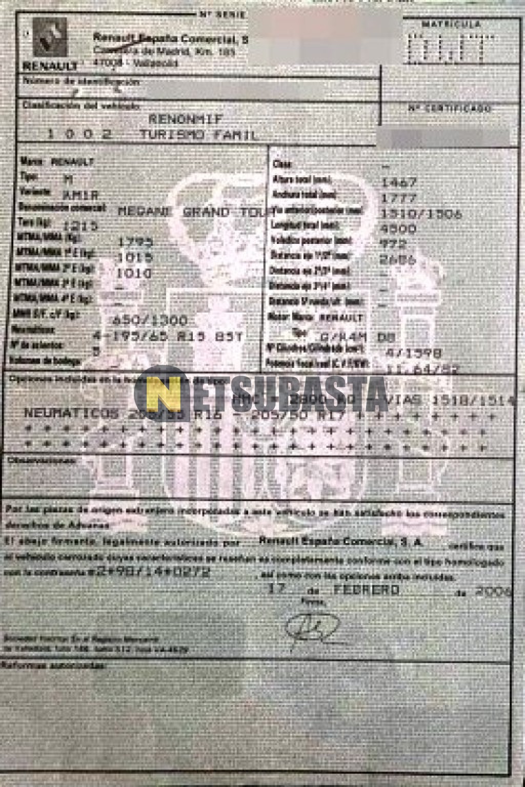 Subasta de Renault Megane Grand Tour 1.6 16v 2006 Averiados, Marca Renault, Modelo Megane Grand Tour 1.6 16v, Combustible Gasolina, Kilometraje 140.000 KM, Fecha 1ª matriculación 02/2006, Matrícula ****DWT, Color Exterior , Color Interior , IVA REBU y Ubicación Valladolid.