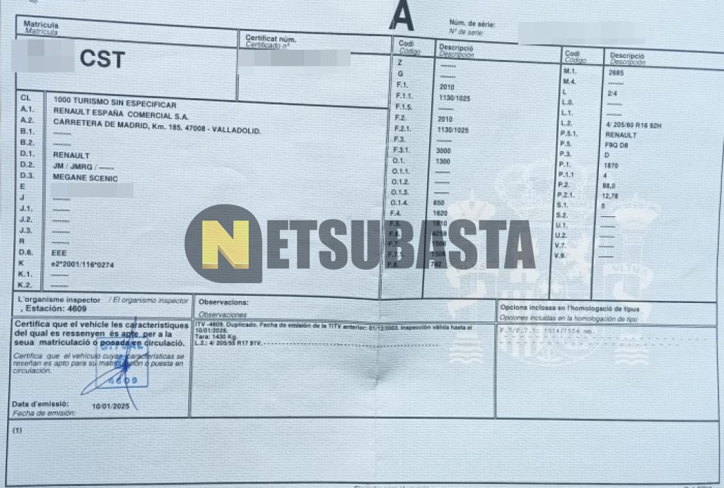 Recuerde que si lo desea, puede imprimir la ficha del vehículo Renault Scenic 1.9 dCi 2004 con todas sus características técnicas.