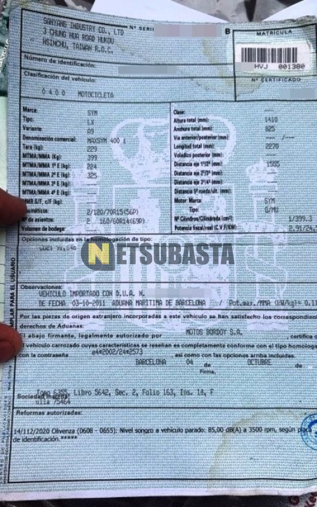 - Matrícula:****HVJ
