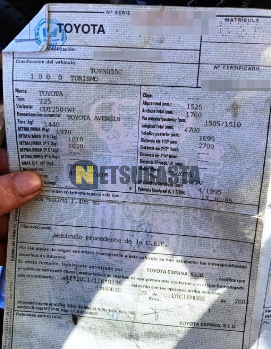 Recuerde que si lo desea, puede imprimir la ficha del vehículo Toyota Avensis Wagon 2.0 D-4D 2004 con todas sus características técnicas.