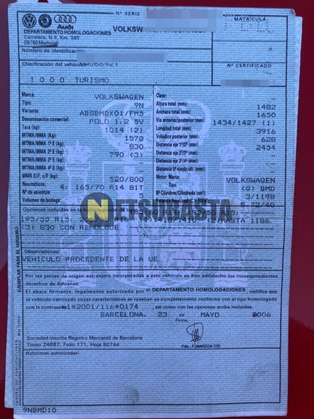 Subasta de Volkswagen Polo 1.2 2006 Averiados, Marca Volkswagen, Modelo Polo 1.2, Combustible Gasolina, Kilometraje 100.000 KM, Fecha 1ª matriculación 06/2006, Matrícula ****FBD, Color Exterior , Color Interior , IVA REBU y Ubicación Cádiz.