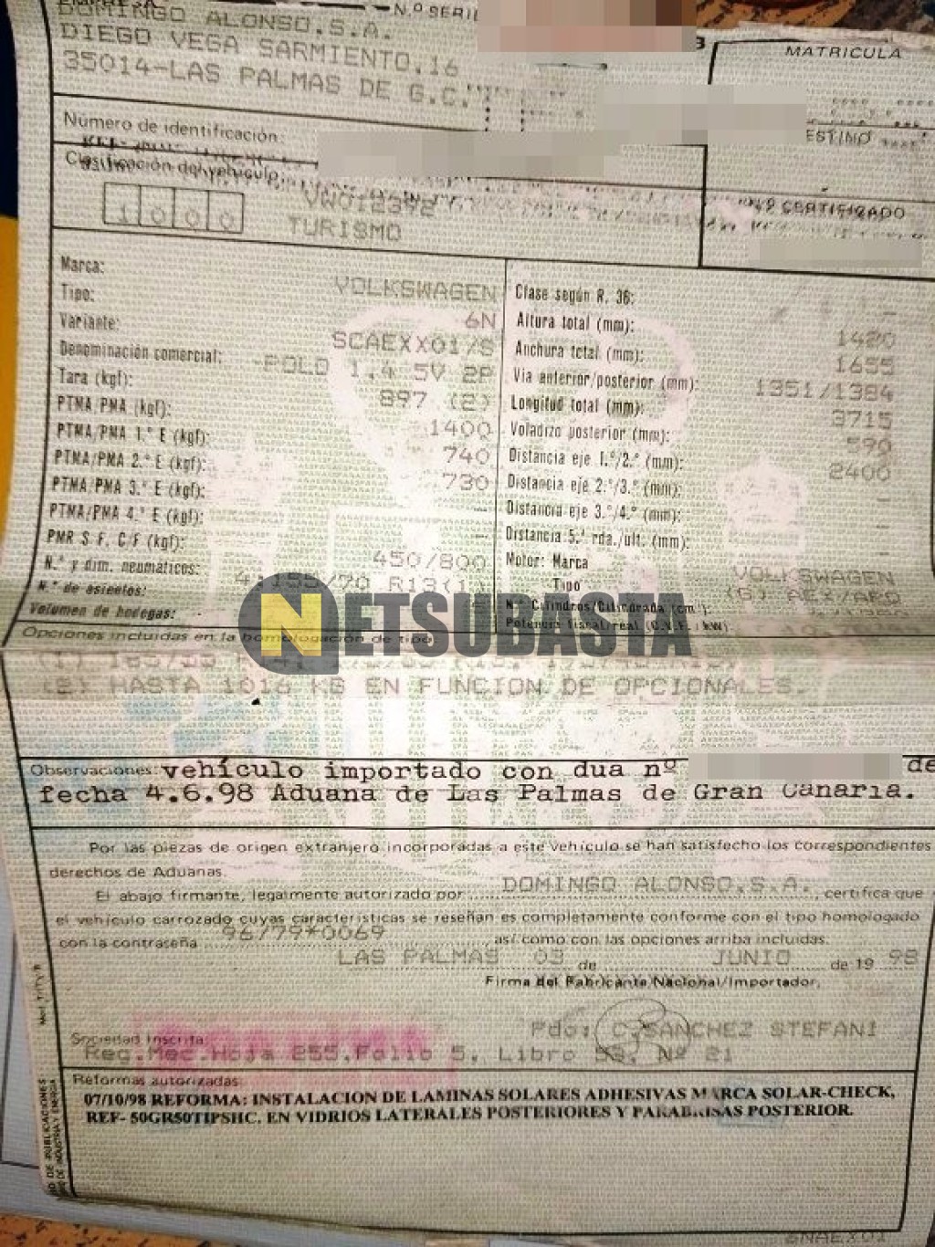 Recuerde que si lo desea, puede imprimir la ficha del vehículo Volkswagen Polo 1.4 1998 con todas sus características técnicas.